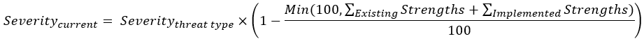 Given that we have 2 Weak Mitigations, the overall strength of the Mitigations is 50. In fact, you have to add up the strengths to have the overall value. The current strength can be calculated as follows.