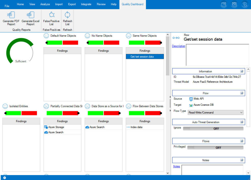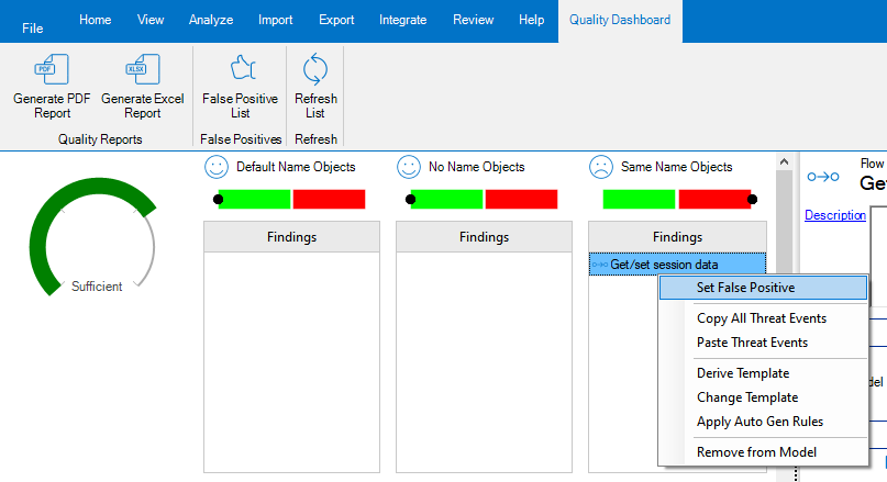 - Refresh List allows to recalculate the Quality Dashboard. It is useful after a change to the Threat Model occurs, because the Quality Dashboard does not automatically update with changes to the Threat Model.