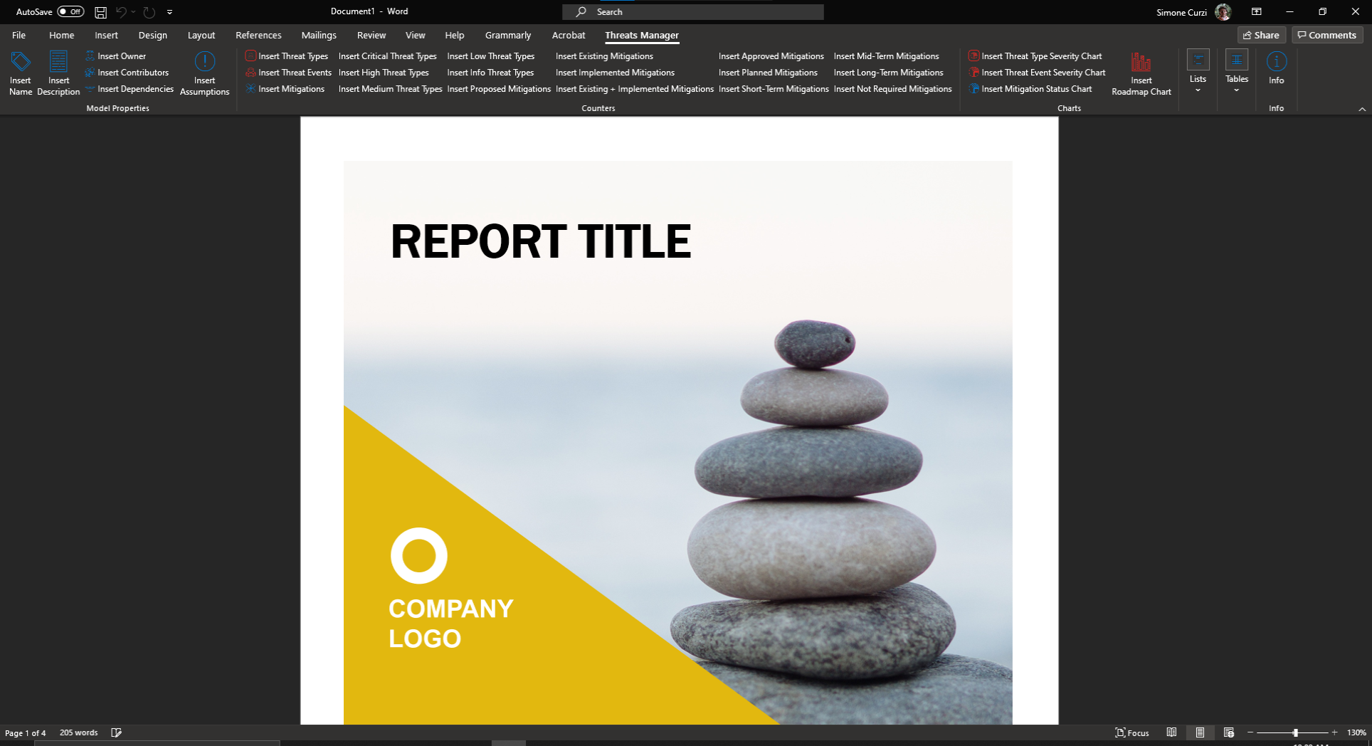 Threats Manager Studio (TMS) enables the automatic generation of Word reports from Threat Models. This functionality is based on two different tools: TMS itself for the generation and a Microsoft Word Add-In to prepare Word templates which can be used by TMS.