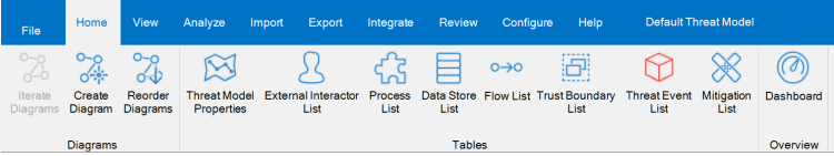 The Home ribbon contains the Flow List, which shows all the flows defined in the Threat Model.