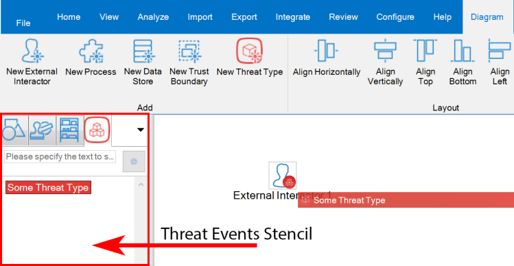 It is possible to create new Threat Types from diagrams, by clicking the New Threat Type button in the Diagram ribbon.